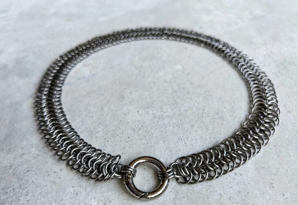 Setting realistic expectations is key: the colour is a crisp, neutral grey with high reflectivity, giving a “metal feel” that’s substantial and cool to the touch. For those wondering, “Is stainless steel basically the same look as silver?”—it’s remarkably close, especially in chainmail designs where the weave enhances the shimmer. And crucially, “Will it tarnish like sterling?” No, stainless steel resists oxidation far better, maintaining its gleam without regular polishing. This makes handmade chainmail necklace options in stainless ideal for everyday wear, blending affordability with enduring appeal.