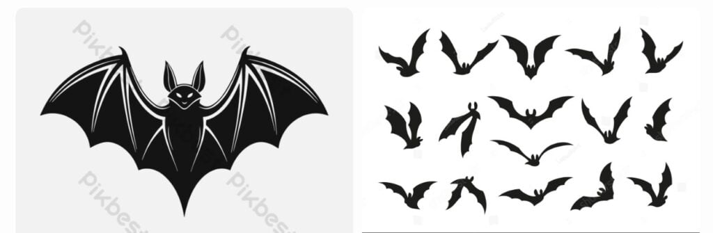 1. Bat Silhouettes Clean, minimalist black shapes dominate gothic graphic design—simple yet instantly recognizable.