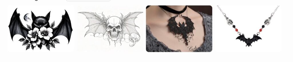 - Gothic jewelry (bat-wing pendants, crystal bat necklaces)