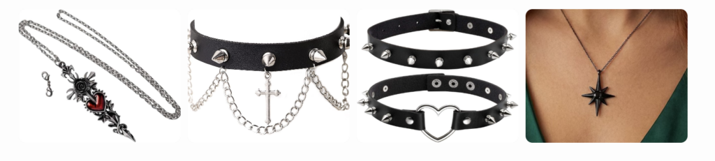 - Use gothic necklaces to contrast minimalist outfits
