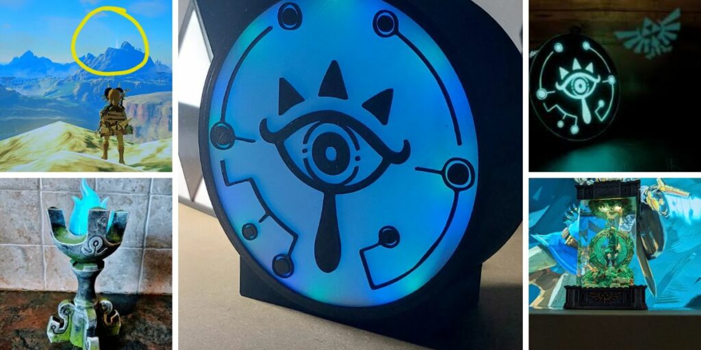 Sheikah Slate Lamp: A wooden and acrylic lamp with a vibrant blue glow, mimicking the Sheikah Slate’s design.