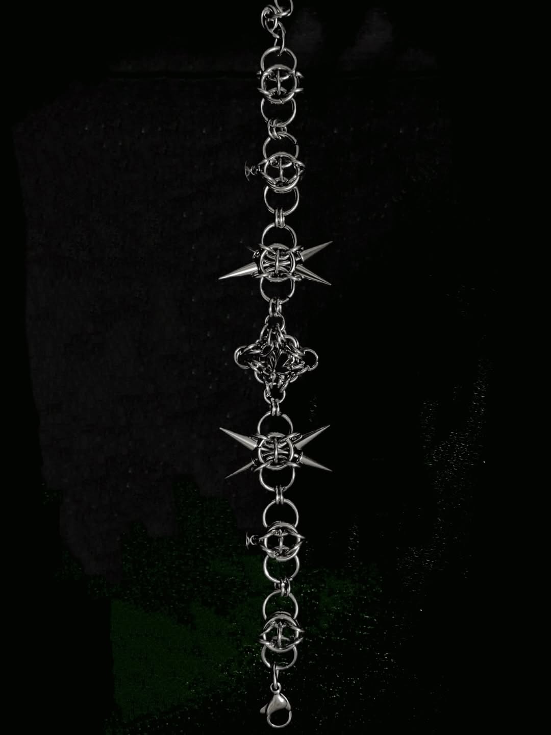 Designed in a gothic-industrial aesthetic, this bracelet blends medieval chainmail techniques with modern darkwear style. Every piece is handmade, ensuring no two bracelets are ever exactly alike.