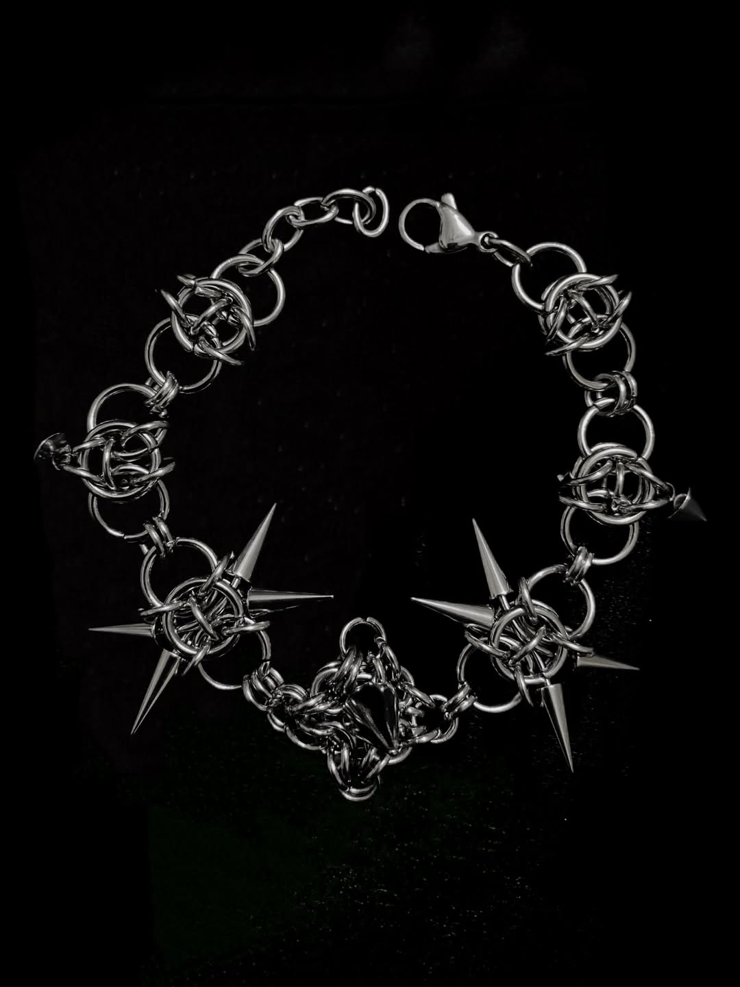 Whether worn as a daily armor or a bold statement for alternative fashion, the Aether Spike Orb Chainmail Bracelet embodies raw energy, craftsmanship, and individuality.