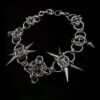 Each bracelet is meticulously woven using solid metal rings, forming orb-shaped links that symbolize protection, balance, and unbreakable connection. The sharp spike accents are not merely decorative — they represent boundaries, resilience, and the power to stand your ground.