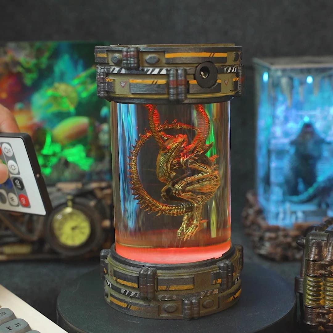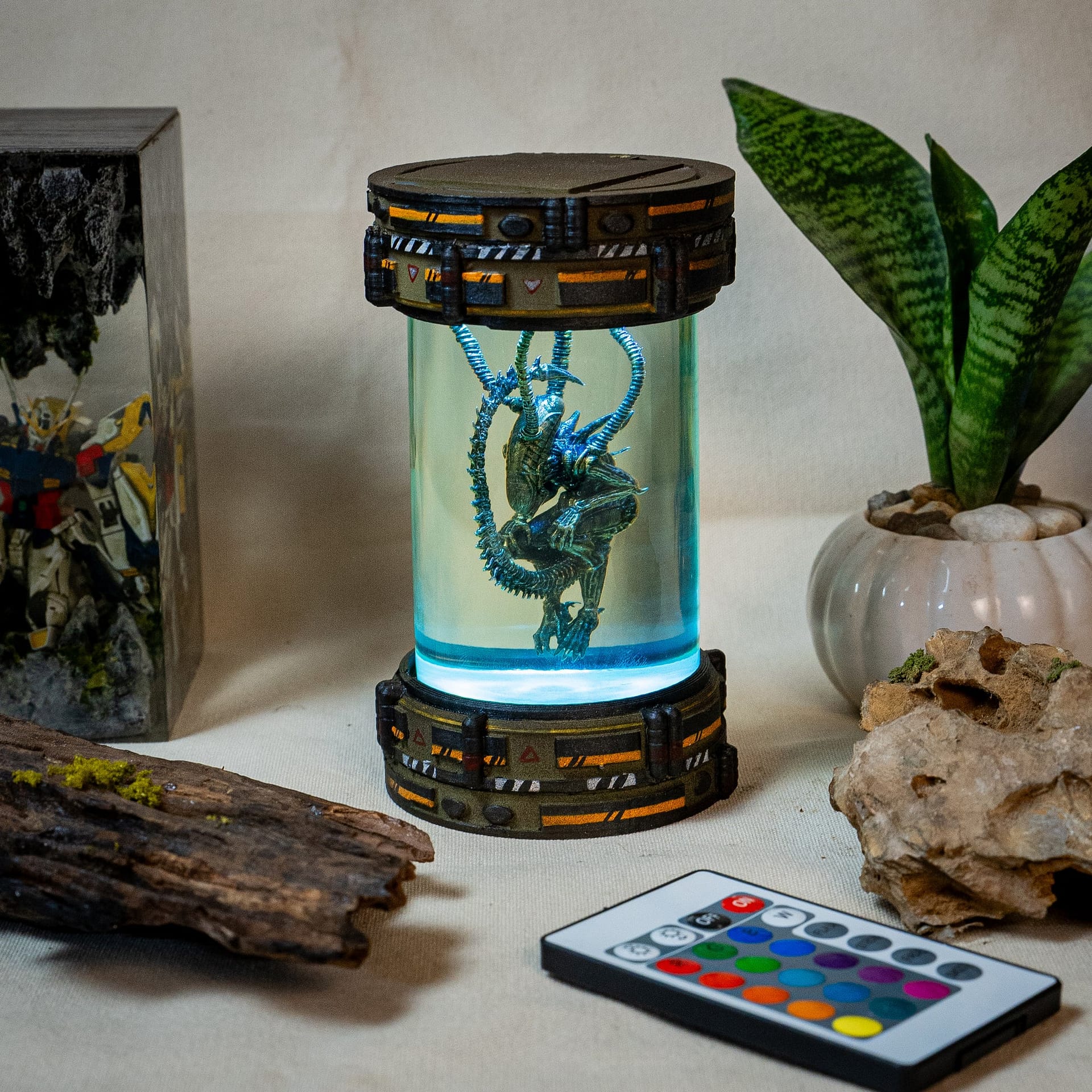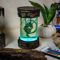 Step into the realm of science fiction with the AlienGlow Hatchlight, a stunning bioluminescent display that brings the mystery of the cosmos right to your home. This futuristic decor piece features a mesmerizing Xenomorph-inspired creature suspended in a glowing tank, designed to captivate fans of horror, space, and fantasy alike.