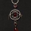 A suspended crimson teardrop crystal sways gently with movement, catching the light like a drop of fresh blood. Subtle metal spikes add an edge of menace, balancing beauty with darkness.