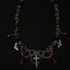 The necklace combines interlinked chainmail texture with dangling crosses and a sword charm, giving it a powerful, dark, and rebellious look.