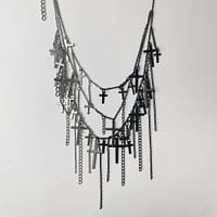 The layered pendant structure and cascading chains create a dynamic, asymmetrical silhouette — designed for those who embrace contrast, individuality, and modern gothic aesthetics.