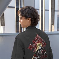 For the fashion enthusiast who enjoys genre-inspired apparel and accessories, this Bomber Jacket is a must-have wardrobe addition. Its Halloween-appropriate horror and scary aesthetic elevated by detailed embroidery make it a perfect conversation starter. Fans of gothic metal music and those seeking clothing with an edgy feel will love showing off this uniquely somber yet memorable Bomber Jacket design.