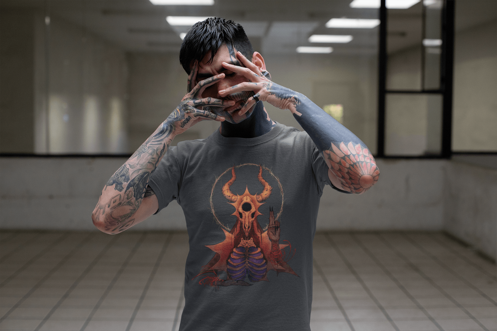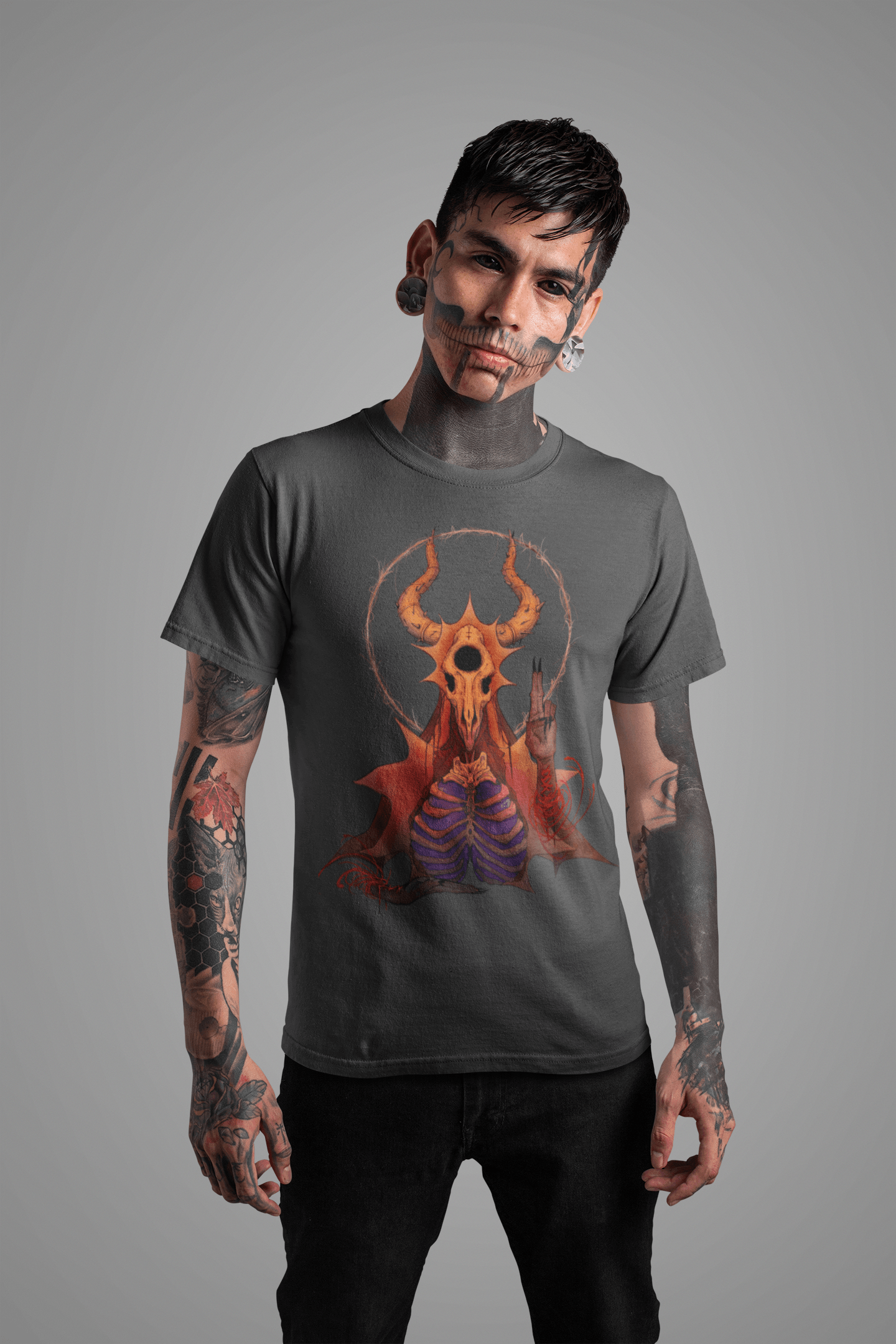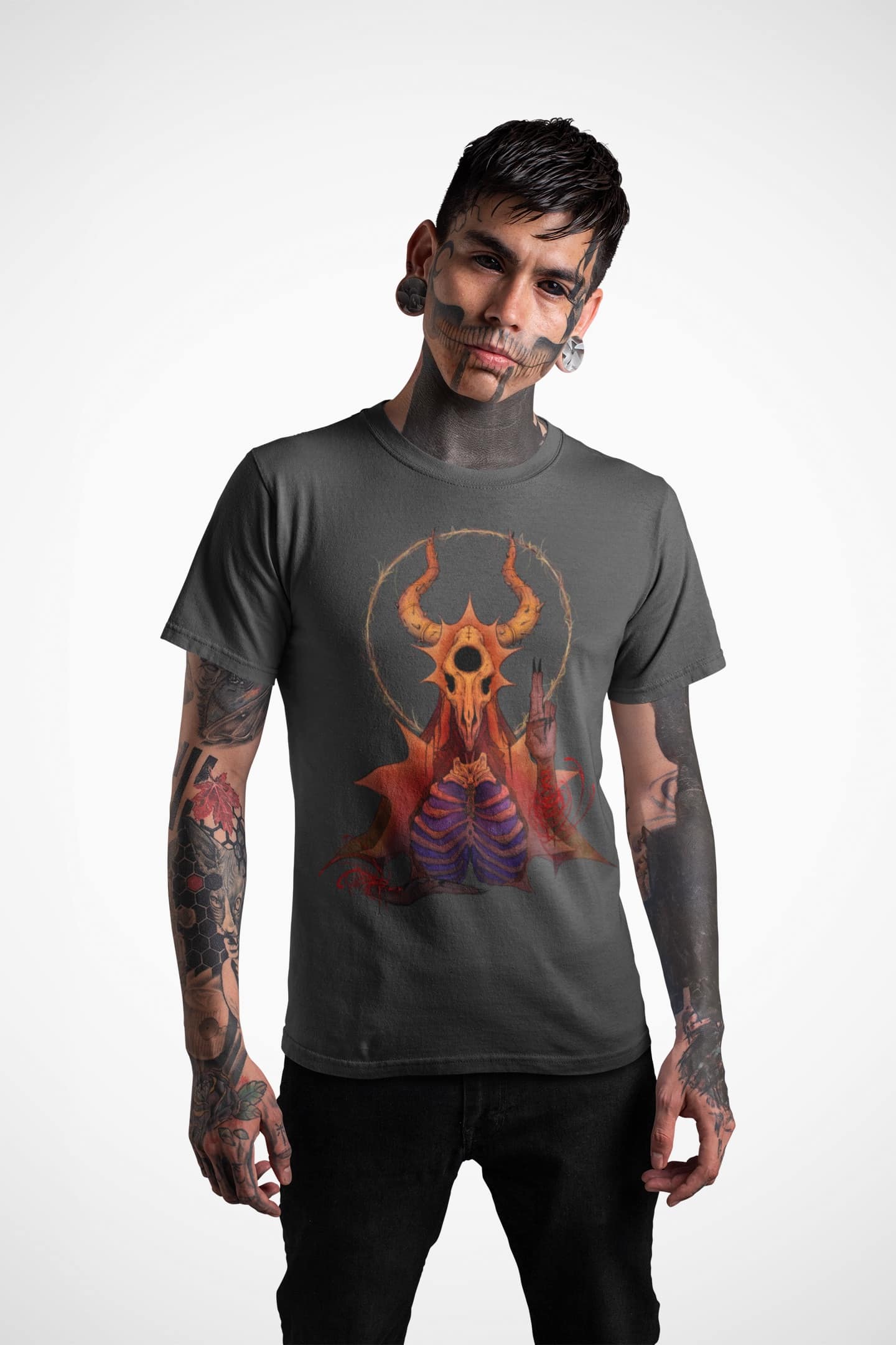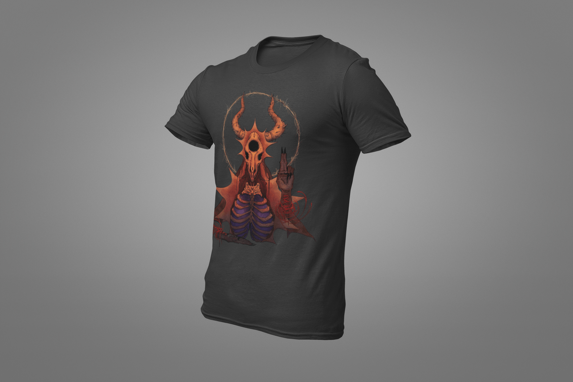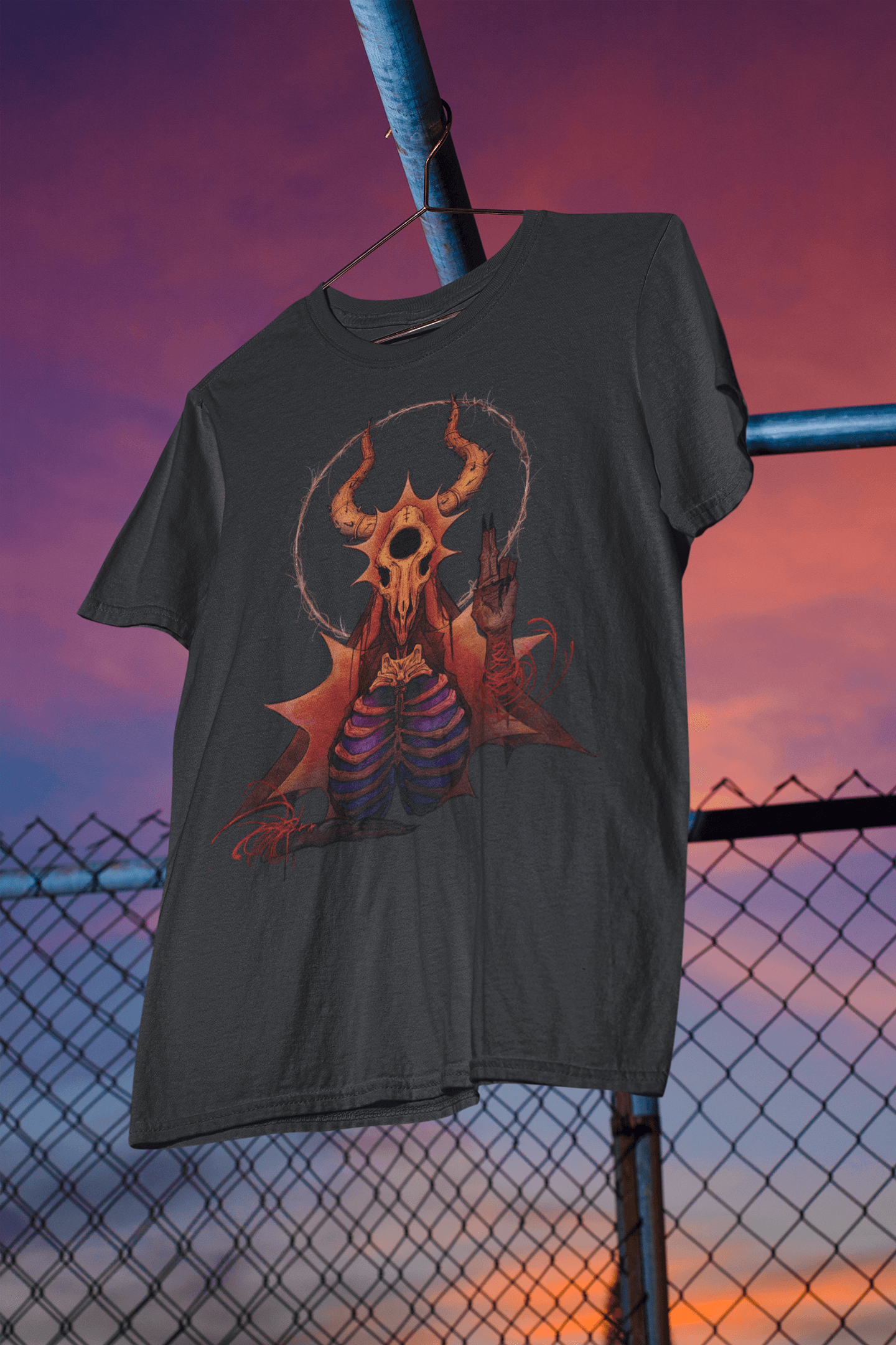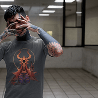 The design depicts a unique illustration that captures aspects of spirituality and nature. At the center is a skull surrounded by a halo of sunlight, representing the cycle of life and rebirth. The artistic motif was inspired by mystical folklore and aims to convey a message of hope through darker motifs. Crafted from ultra-soft cotton, this T-shirt provides comfort and style. Suitable for both men and women, it will make a statement for those who appreciate unconventional designs with deeper meaning. Only a few pieces remain, so act now to own this one-of-a-kind fashion item from our special lineup.