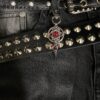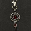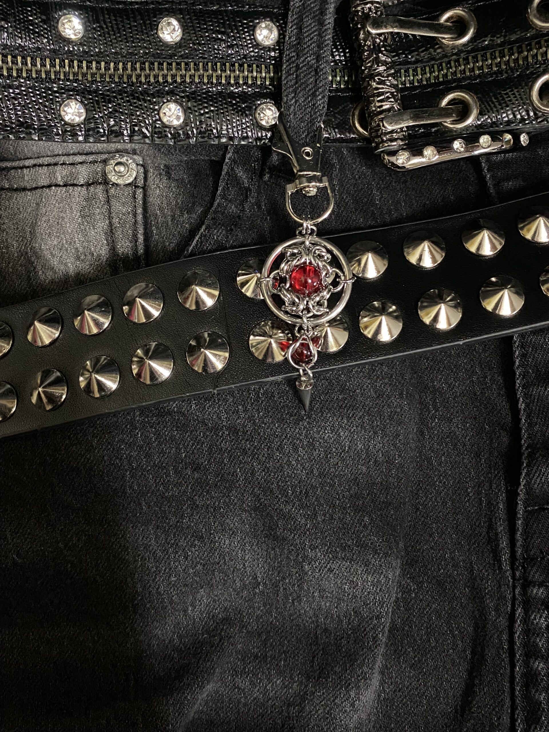At the center of the piece lies a deep red core, enclosed in a circular chainmail structure, symbolizing strength, energy, and inner fire. Below it hangs a polished steel spike, adding a sharp, aggressive accent that completes the gothic character of the design.