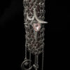 Crafted entirely by hand, the chainmail structure wraps securely around the lighter, creating a medieval-inspired armor look while remaining lightweight and functional. The design is elevated with a polished gothic cross centerpiece, set with a soft pink heart crystal — symbolizing contrast between darkness and vulnerability.