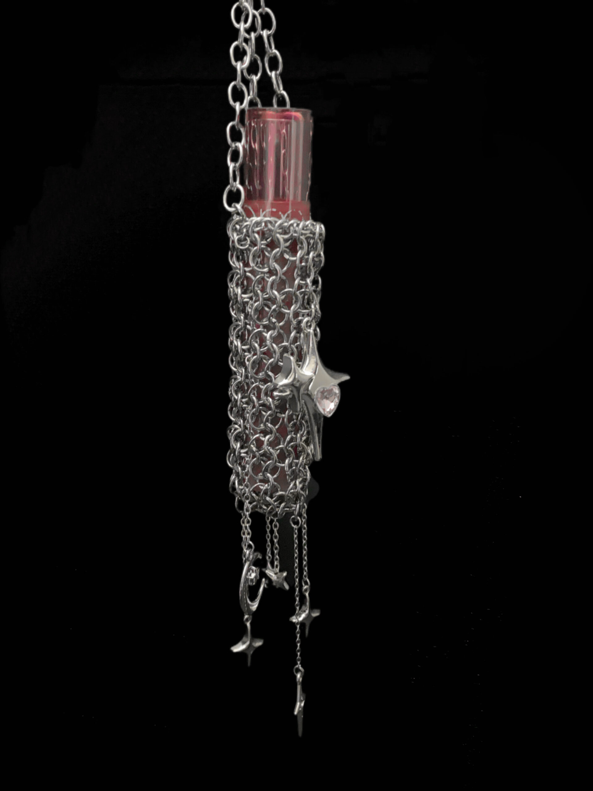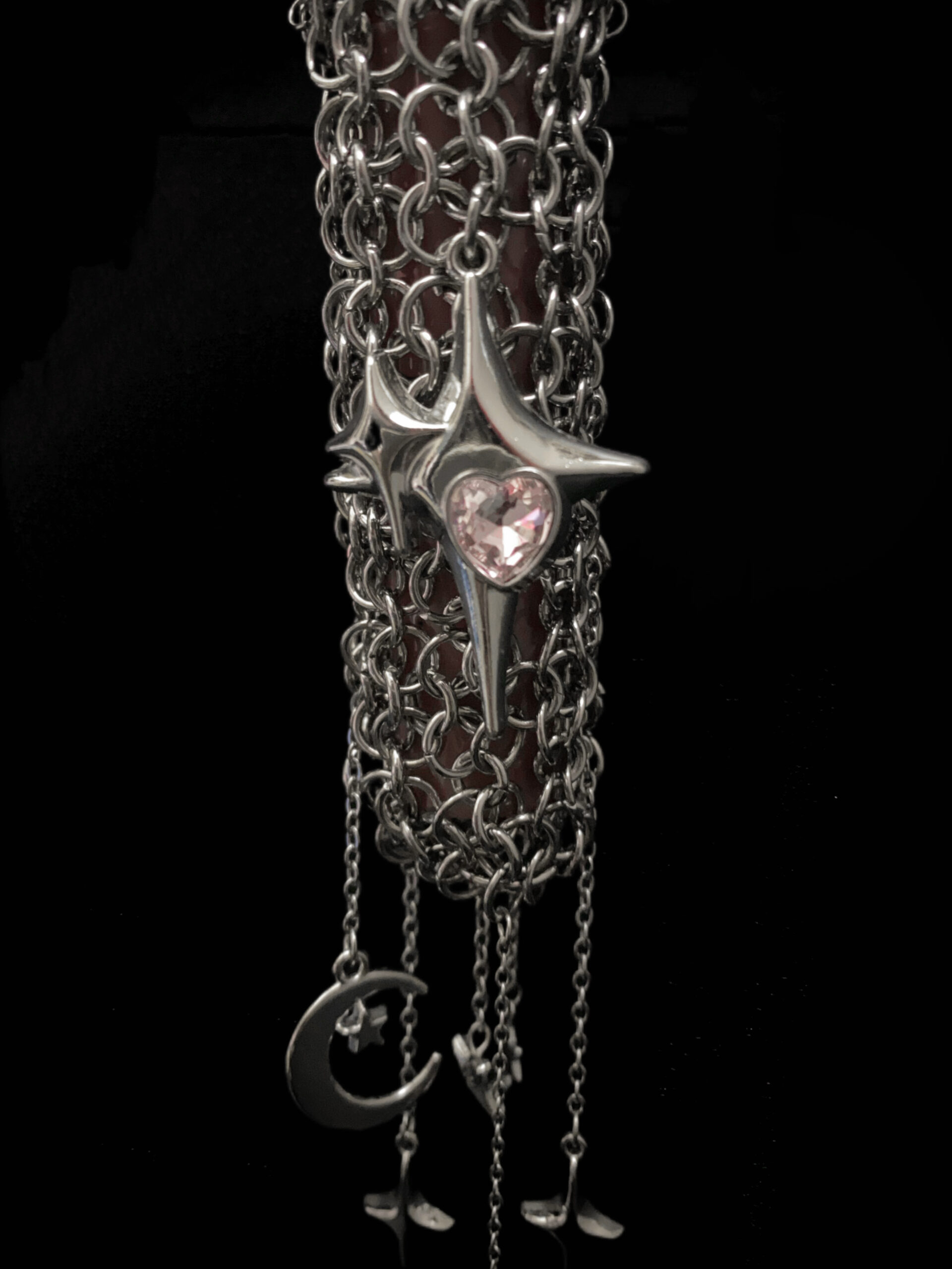 Gothic Chainmail Lighter Case with Pink Heart & Moon Charms