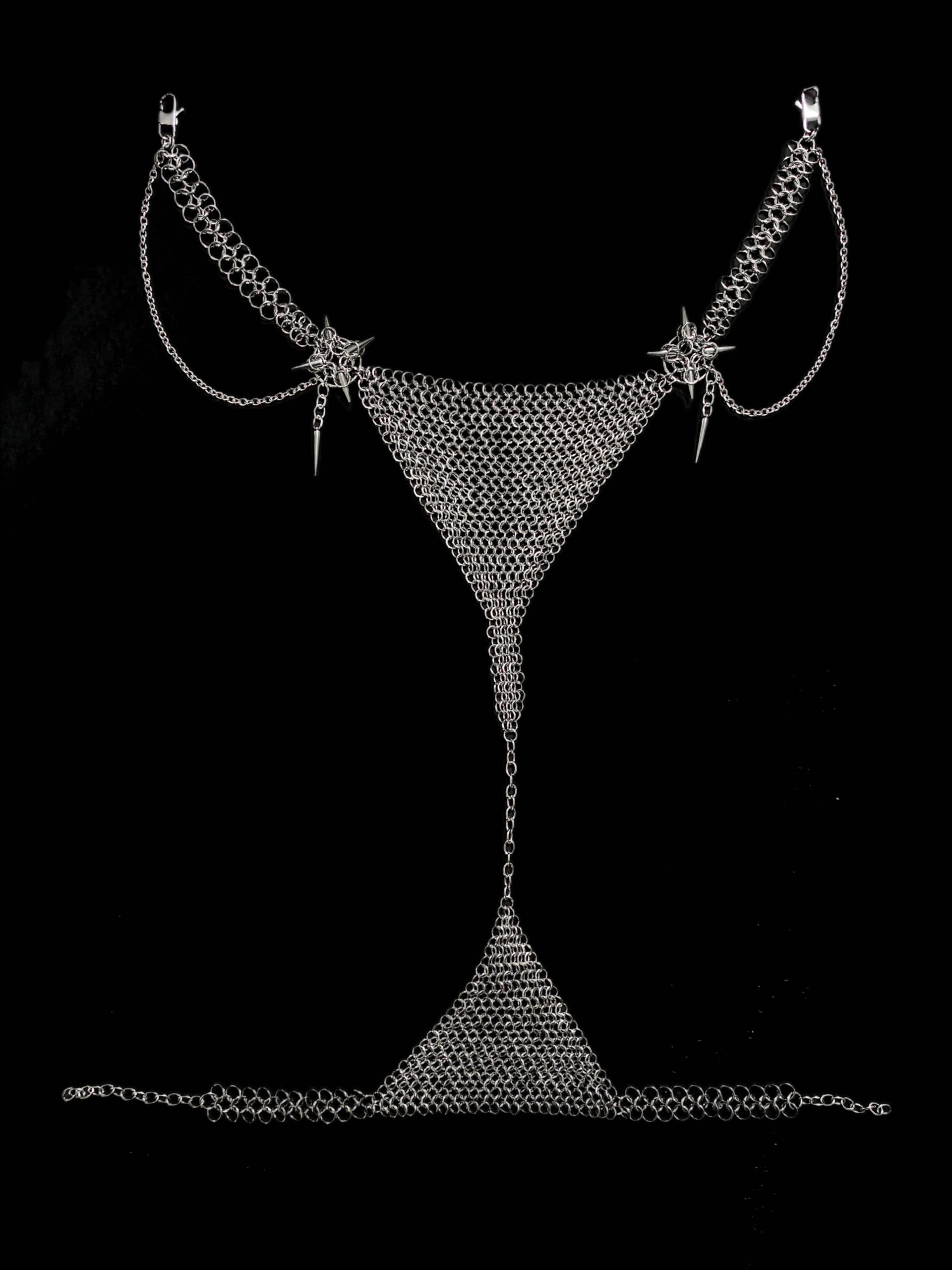 The Gothic Chainmail Lingerie Set is a handcrafted statement piece inspired by medieval armor and modern gothic fashion.