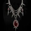 Gothic Chainmail Spike Necklace with Blood Red Stone