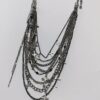 Designed with multiple layered chains and cross charms, the necklace creates depth, movement, and a powerful gothic silhouette. Each chain is carefully assembled by hand, forming a dramatic cascading structure that catches light while maintaining a dark, mysterious presence.