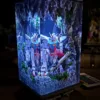 Encased in a rugged cave-like structure, the Gundam model sits majestically amidst glowing LED lights, casting a luminous glow that transforms any space into an ambient sci-fi haven. The intricate details of the Gundam robot, paired with the natural elements of moss and rock, make this lamp a standout collectible for anime enthusiasts and mecha lovers.
