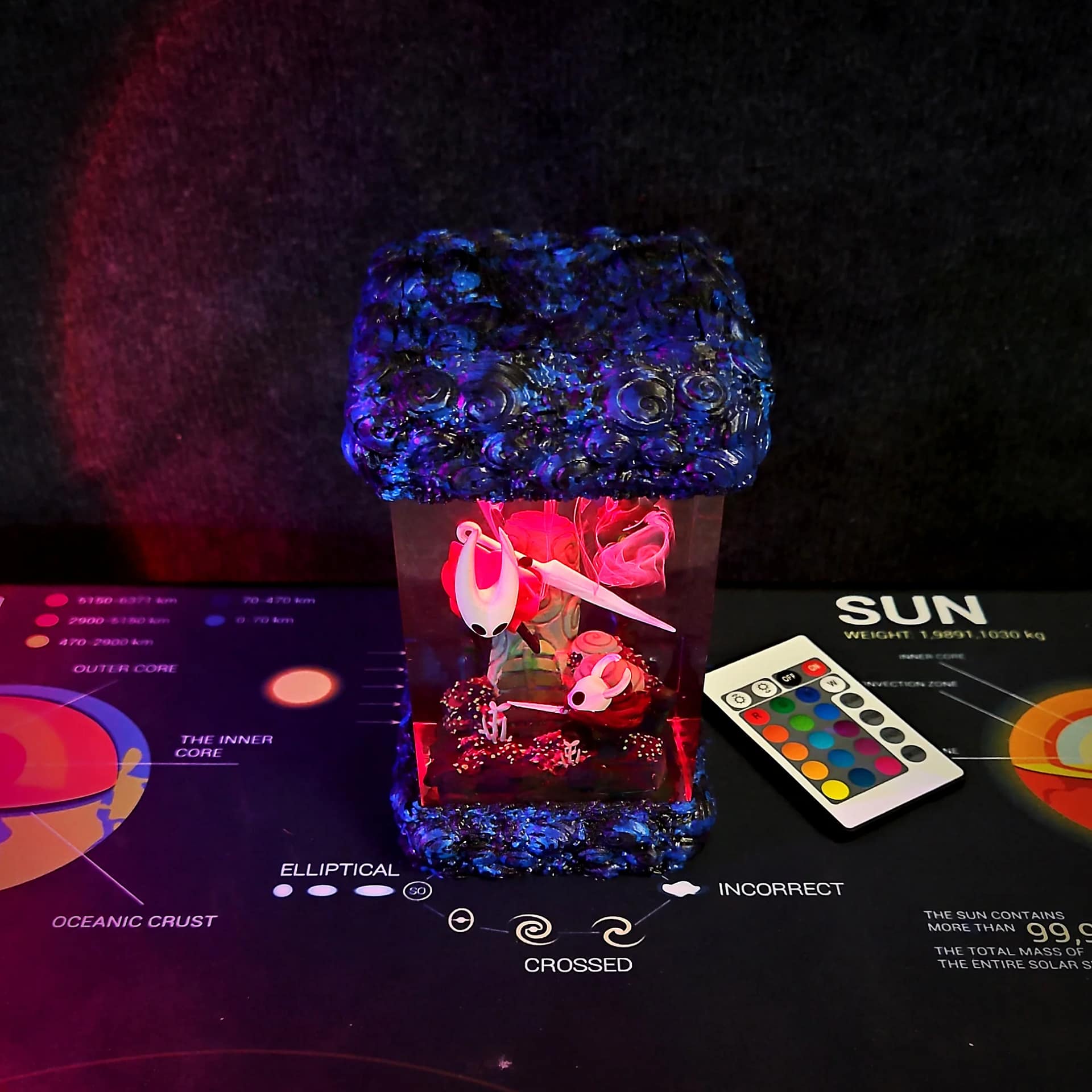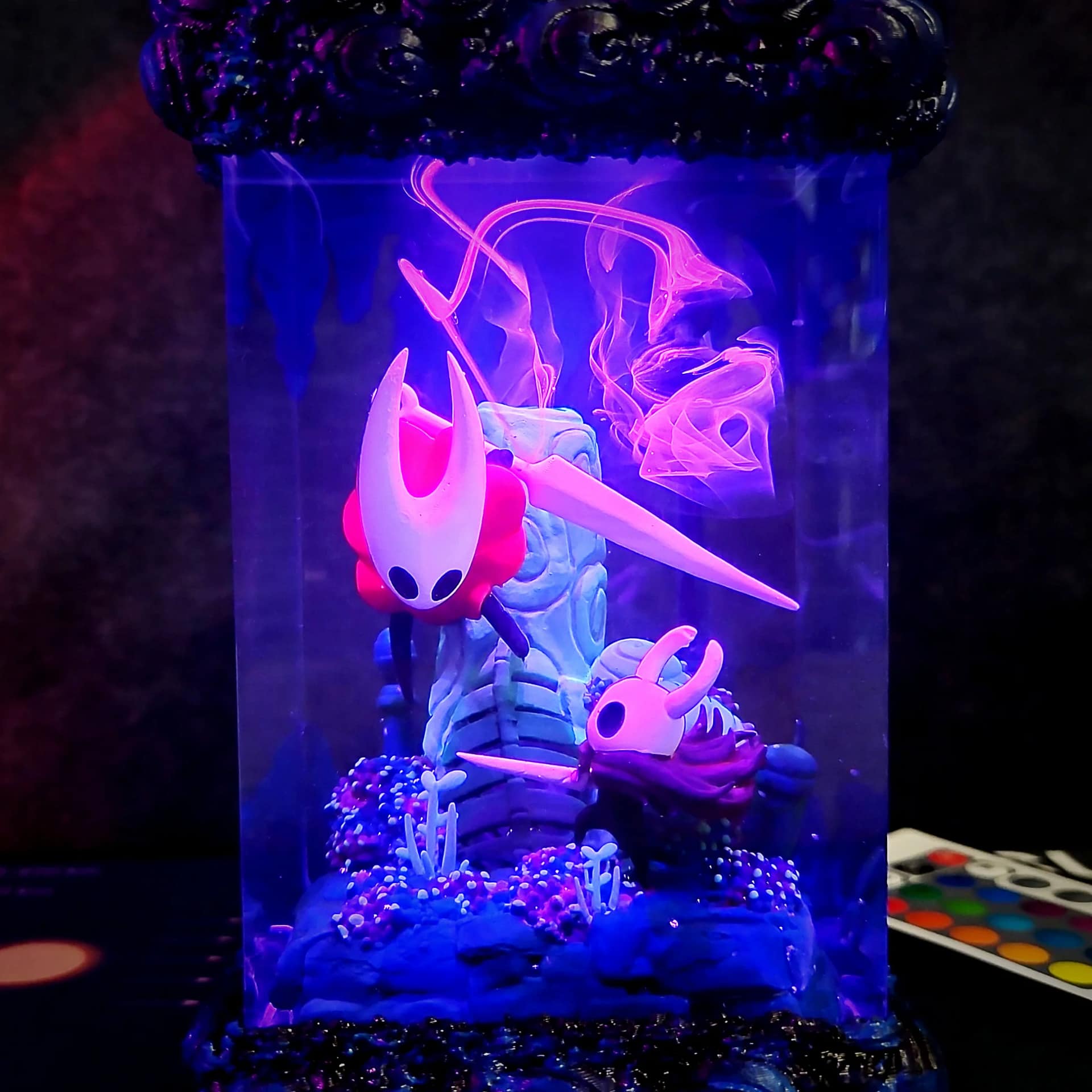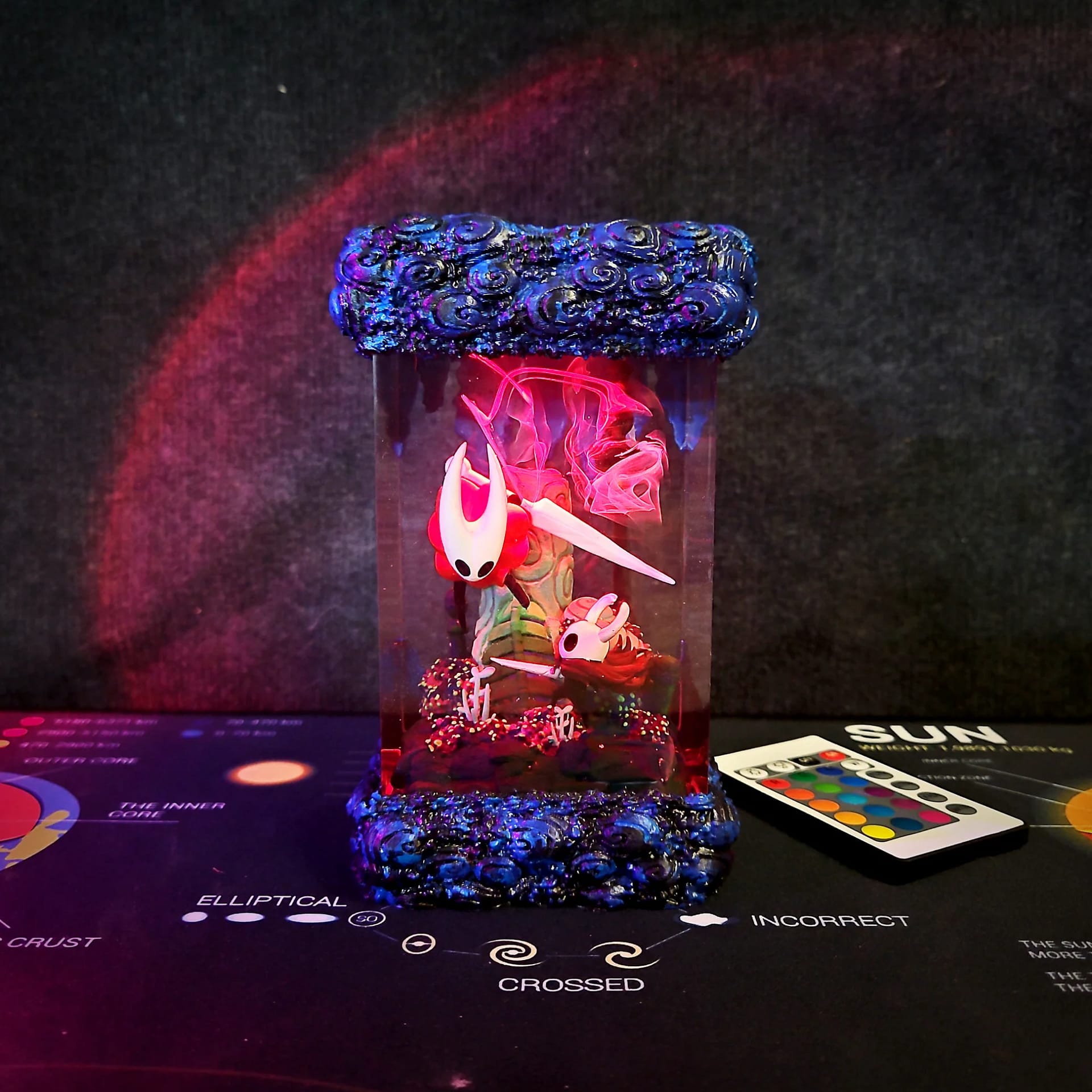 Illuminate your space with the stunning Hollow Knight vs Hornet Lamp! Handmade resin diorama with RGB lighting, rechargeable battery & remote control. Perfect gaming decor & collectible gift for Hollow Knight fans.