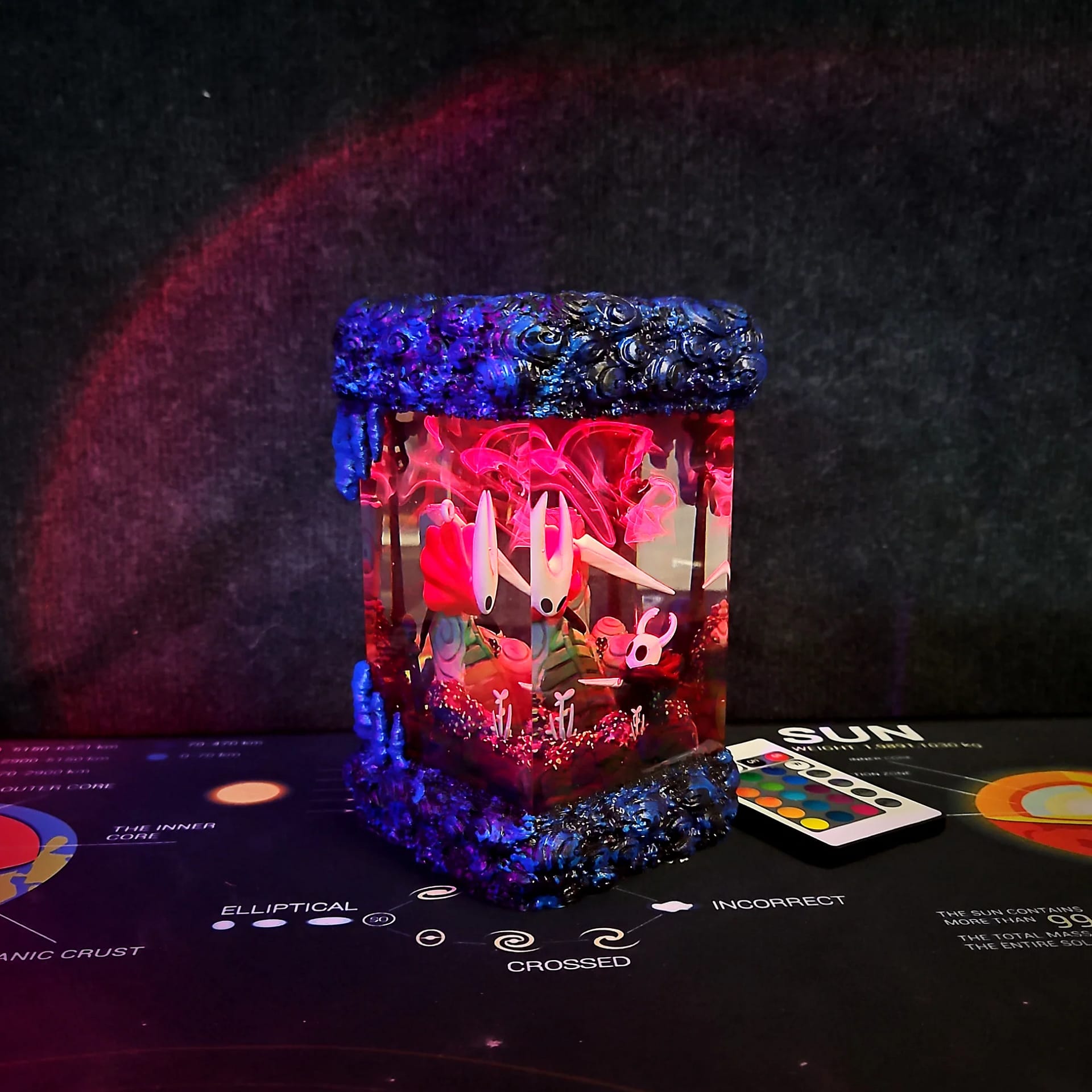 Designed for Hollow Knight fans, gamers, and dark fantasy lovers, this lamp combines premium resin diorama artistry with RGB lighting and remote control for customizable mood lighting. Whether you’re decorating your gaming setup or gifting it to a fellow gamer, this piece celebrates immersive game-inspired decor.