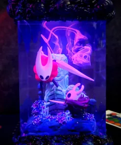 Illuminate your space with the stunning Hollow Knight vs Hornet Lamp! Handmade resin diorama with RGB lighting, rechargeable battery & remote control. Perfect gaming decor & collectible gift for Hollow Knight fans.