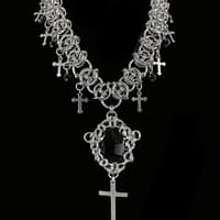 The Obsidian Emblem Chainmail Necklace is a bold gothic statement piece, handcrafted using intricate chainmail weaving techniques.