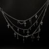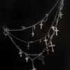 This layered chain necklace is built for maximum impact: chunky paperclip links paired with softer draped chains, finished with multiple cross charms in mixed sizes for that unmistakable gothic / punk / alt silhouette.