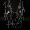 This layered chain necklace is built for maximum impact: chunky paperclip links paired with softer draped chains, finished with multiple cross charms in mixed sizes for that unmistakable gothic / punk / alt silhouette.