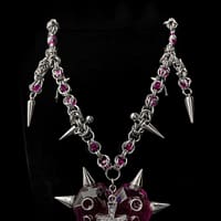 The Rosaline Spikeheart Necklace is a handcrafted chainmail piece designed for bold Valentine gifting.