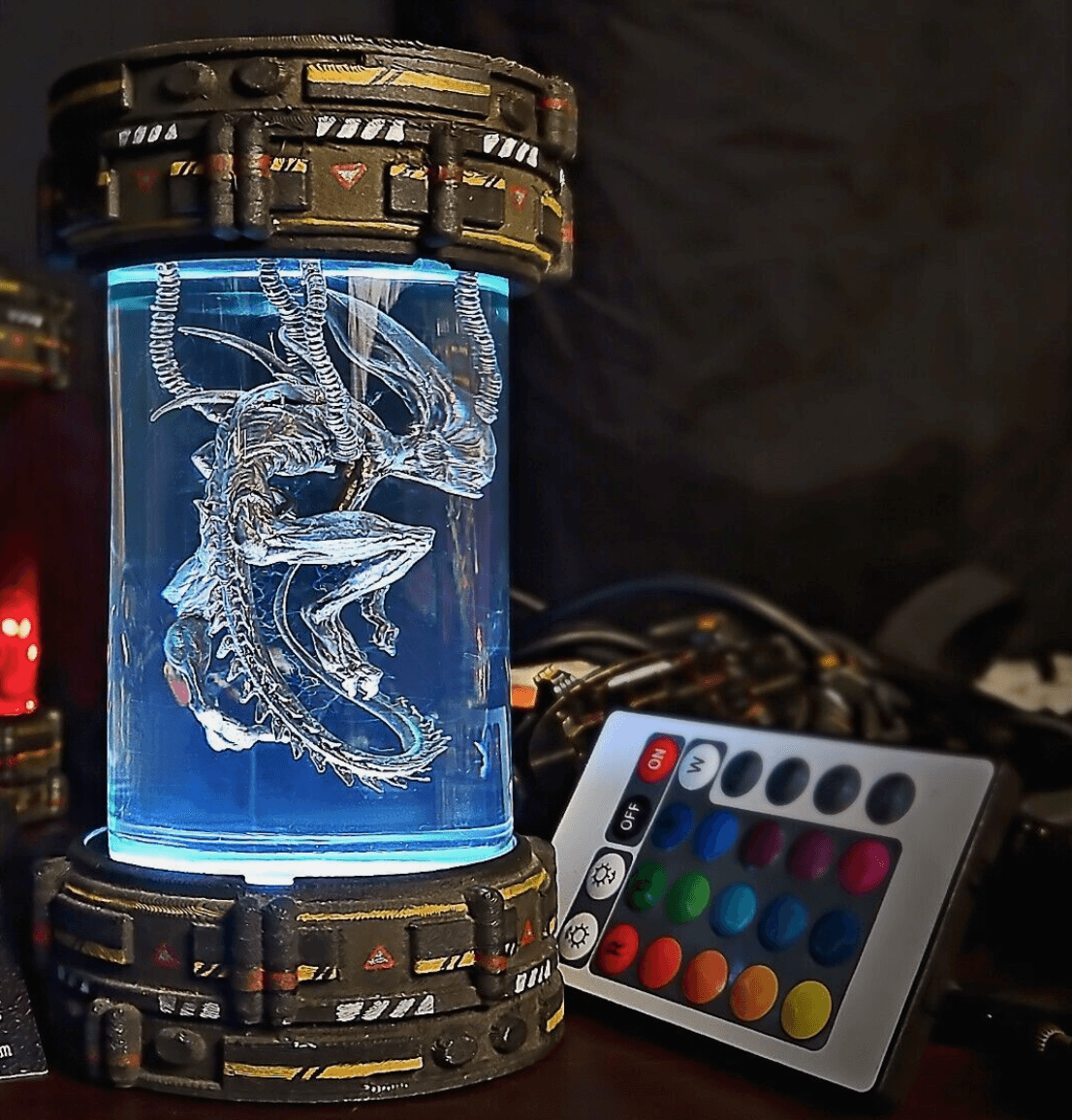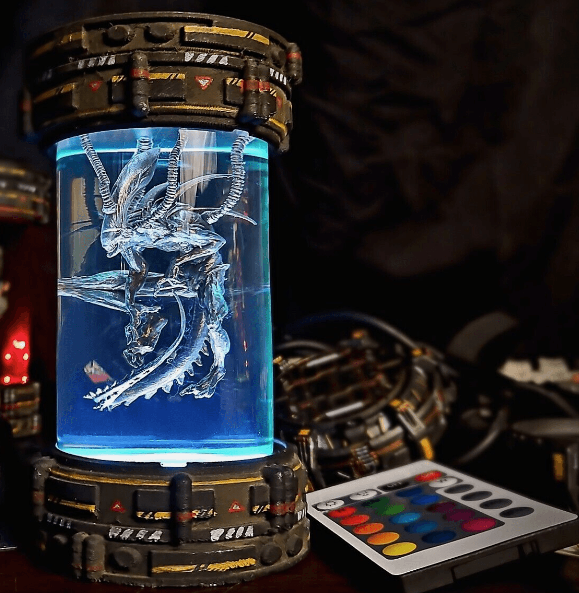 Embrace the thrill of the unknown with this one-of-a-kind creation, blending horror, technology, and style into a single, unforgettable product. Elevate your space with the Xenomorph Cryo-Tube Lamp today!