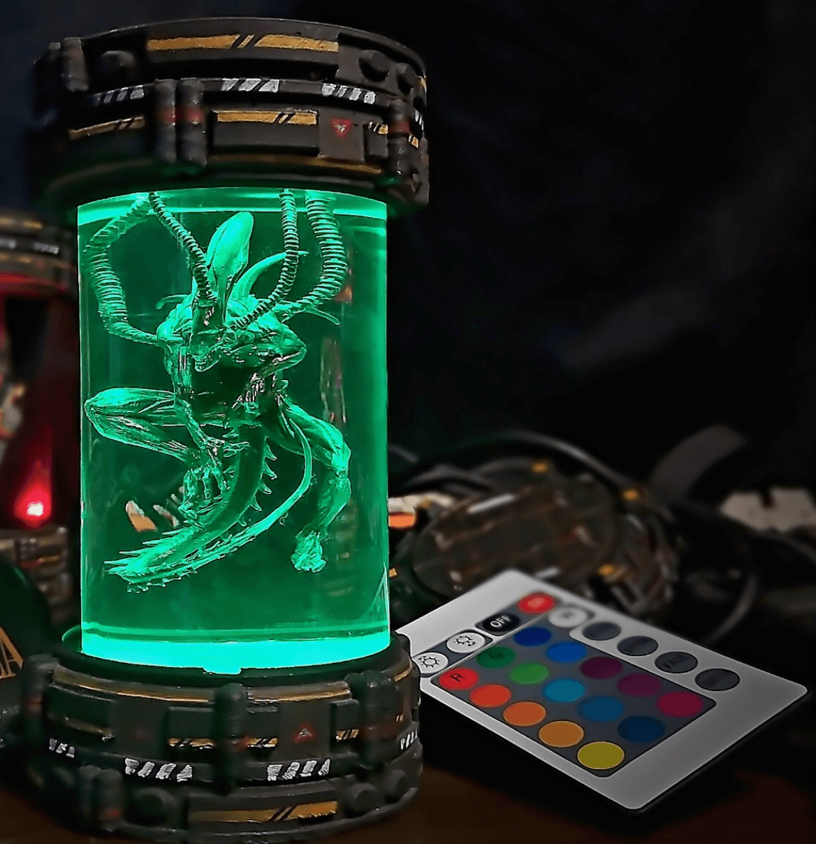 Discover the Xenomorph Cryo-Tube Lamp, a sci-fi inspired LED desk lamp with a 3D Xenomorph model and color-changing lights. Perfect for Alien fans, tech decor, and futuristic illumination.