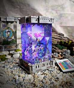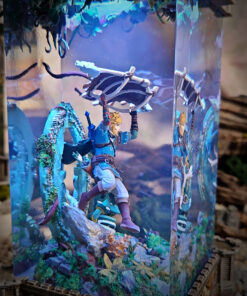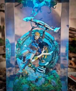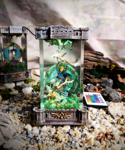 Featuring the iconic hero Link in a breathtaking diorama, the enchanted tower captures a moment of magic as he stands amidst a mystical landscape, surrounded by a glowing fairy and intricate details. The illuminated tower casts a mesmerizing glow, thanks to its vibrant LED lighting, which enhances the ethereal beauty of this decor piece. Every element, from the swirling designs to the rugged textures, reflects the essence of Hyrule, making it a perfect addition to any fan’s collection.