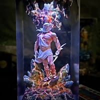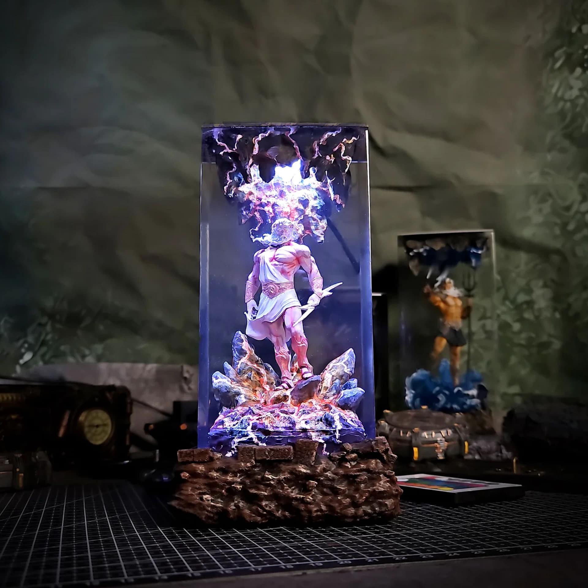 What sets the Zeus Lamp apart is its seamless blend of ancient artistry and cutting-edge craftsmanship. Encased in a crystal-clear resin block, the hand-painted Zeus figure appears to float ethereally, adding a magical illusion that’s both innovative and respectful to its mythological roots.
